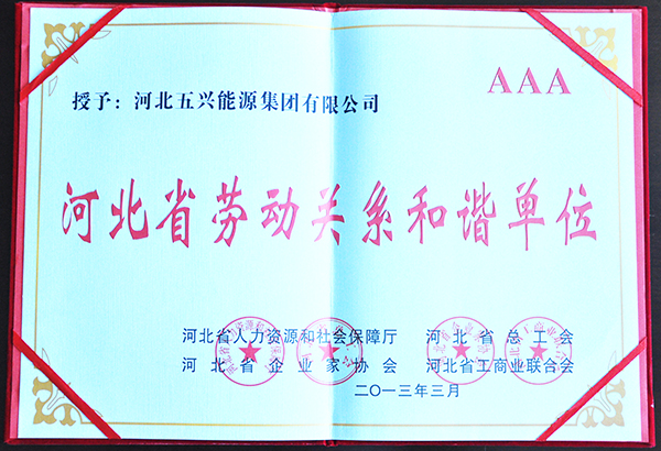 我集團(tuán)于2012年12月份榮獲河北省AAA級(jí)勞動(dòng)關(guān)系和諧企業(yè)。