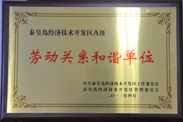 最近,我集團(tuán)榮獲秦皇島開發(fā)區(qū)A級勞動關(guān)系和諧企業(yè)