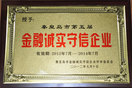 集團(tuán)獲得秦皇島市金融誠實(shí)守信企業(yè)稱號(hào)2012-2014
