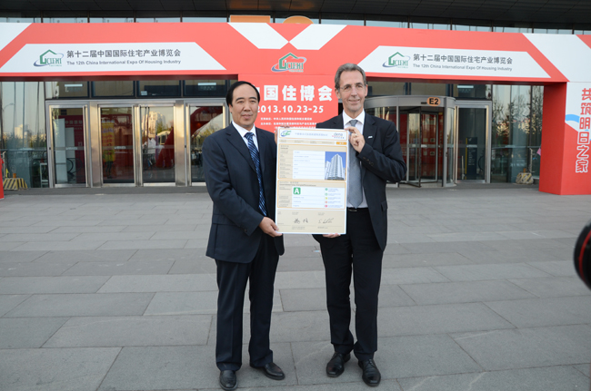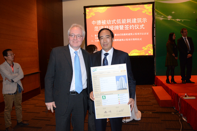 德國能源署署長STEPHEN KOHLER和住建部科技與產(chǎn)業(yè)化發(fā)展中心主任楊榕,為我公司頒發(fā)被動(dòng)房認(rèn)證證書