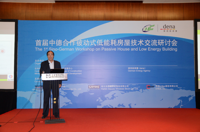 公司總經(jīng)理王臻在“首屆中德合作被動(dòng)式低能耗房屋技術(shù)交流研討會(huì)”上做被動(dòng)房主題演講