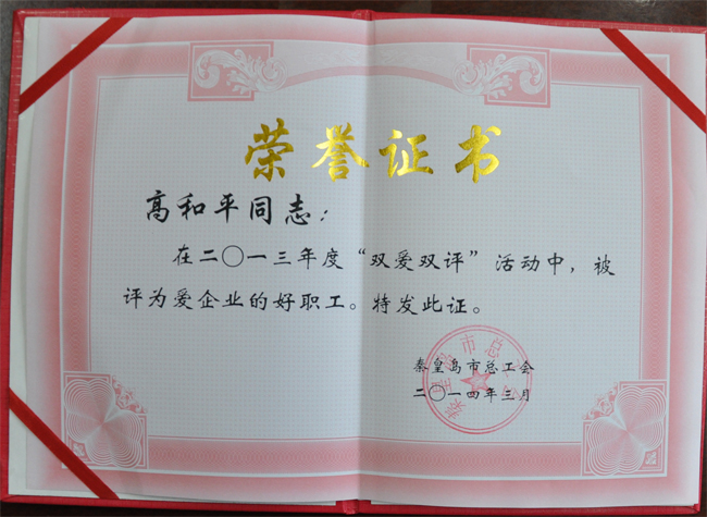 高和平被評為秦皇島市“愛企業(yè)好職工”;