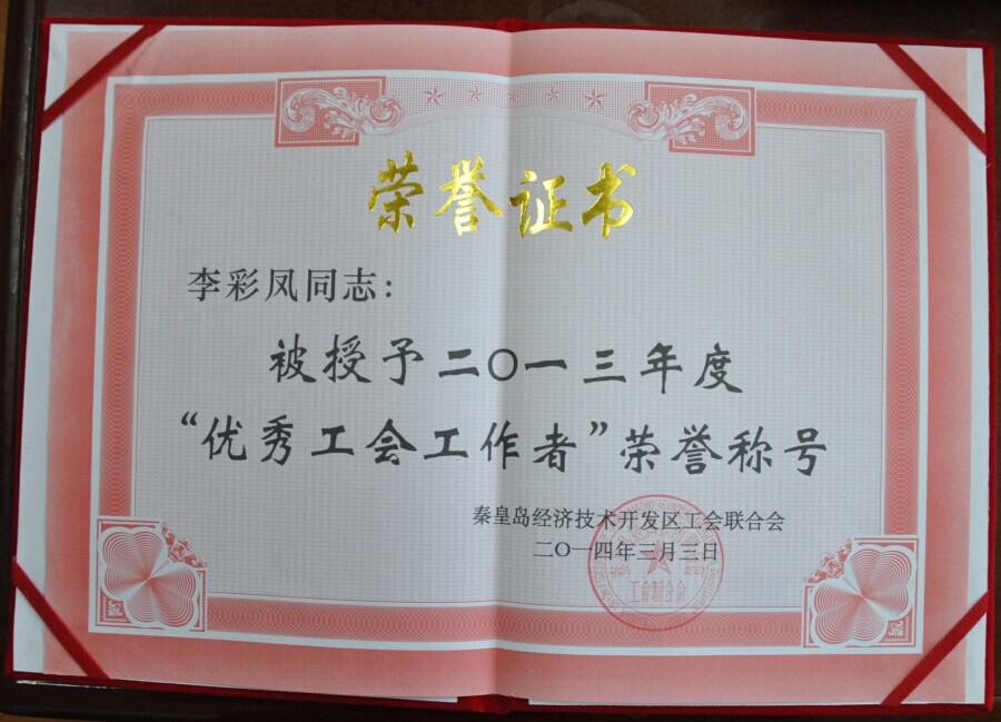 李彩鳳被評為開發(fā)區(qū)“優(yōu)秀工會工作者”;