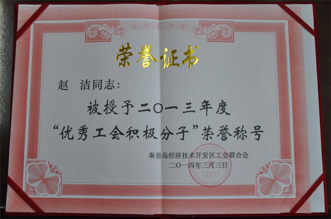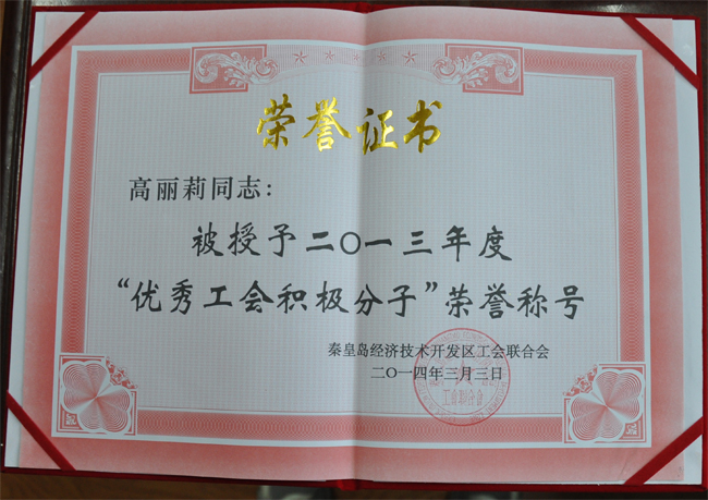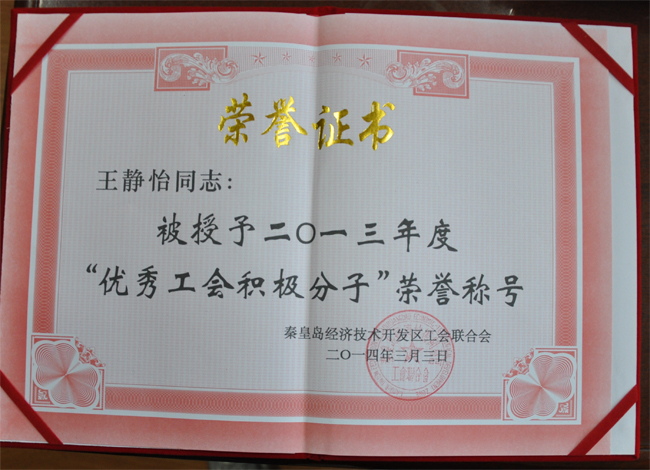 高麗莉、趙潔、王靜怡、宋雪芳被評為開發(fā)區(qū)“工會積極分子”;