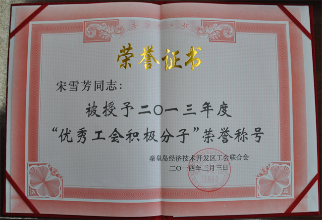 五興集團(tuán)工會被評為 秦皇島市“雙評雙愛”優(yōu)秀基層工會、開發(fā)區(qū)“先進(jìn)職工之家”;