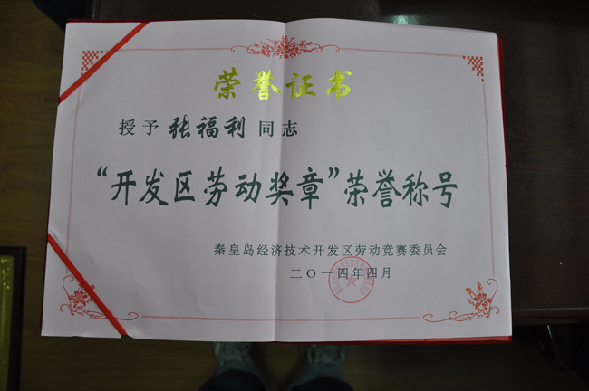 張福利董事長榮獲開發(fā)區(qū)“勞動獎?wù)隆、秦皇島市“愛職工的好經(jīng)理(廠長)”稱號;