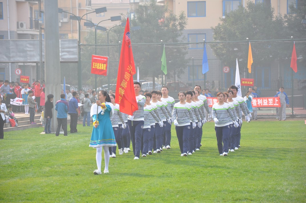 五興集團由21人組成的方陣身穿整潔靚麗、充滿朝氣的運動裝,旗手高舉河北五興能源集團的隊旗,整裝待發(fā)!褒R步走”!隨著隊長的一聲令下,伴著激昂的入場音樂,方陣隊員昂首挺胸、意氣風(fēng)發(fā)的走向了綠茵場,當接近主席臺的時候,齊步換正步,全員高喊“團結(jié)拼搏 奮勇爭先”的運動口號,英姿颯爽,步伐矯健,充分展示了五興人積極向上、勇往直前的精神風(fēng)貌。