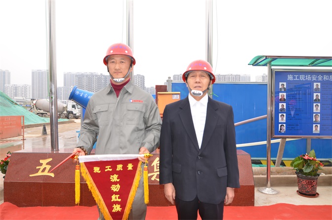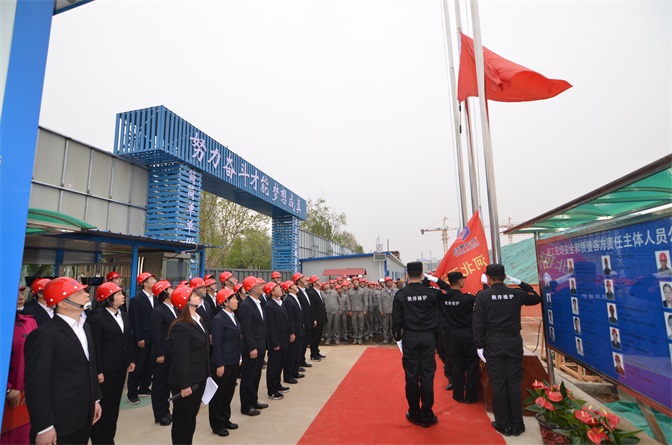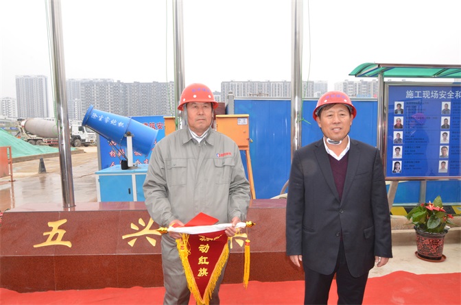 緊接著五興集團(tuán)和建筑公司司旗一并升起