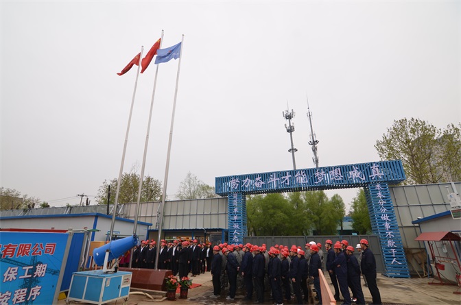 2019年4月29日上午,在水一方B區(qū)工地現(xiàn)場(chǎng)舉行了隆重的升旗儀式。河北五興能源集團(tuán)董事會(huì)領(lǐng)導(dǎo)、五興房地產(chǎn)與凱欣建筑公司執(zhí)行董事張福文、集團(tuán)董事與五興地產(chǎn)公司總經(jīng)理王臻、五興房地產(chǎn)公司全體員工、凱欣建筑公司全體員工、和諧物業(yè)公司高層代表參加了儀式。